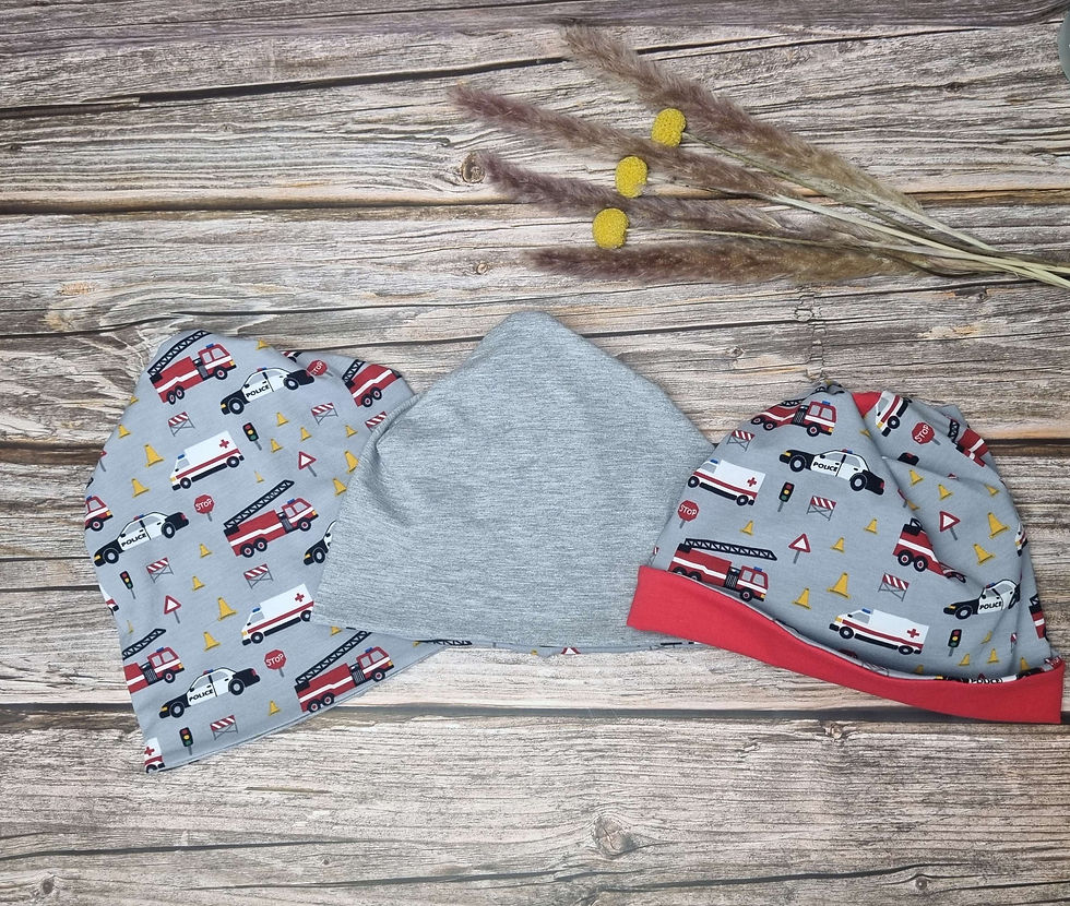 3 in 1 Wende Mütze-Feuerwehr 50cm Kopfumfang